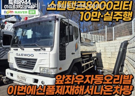 실주행, 스텐탱크8000리터, 앞좌우자동오리발, 이번에신품제작해서나온차량